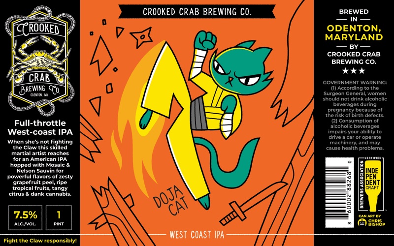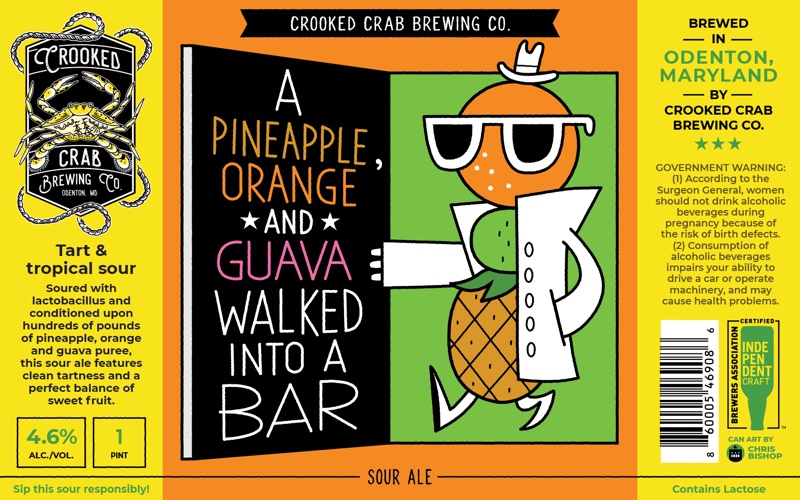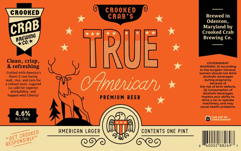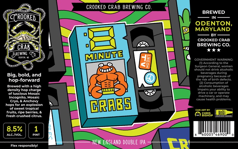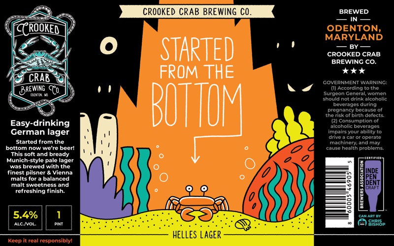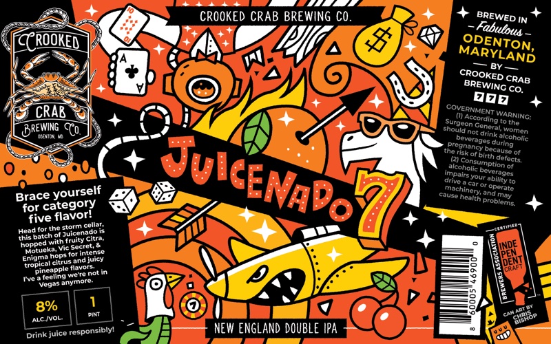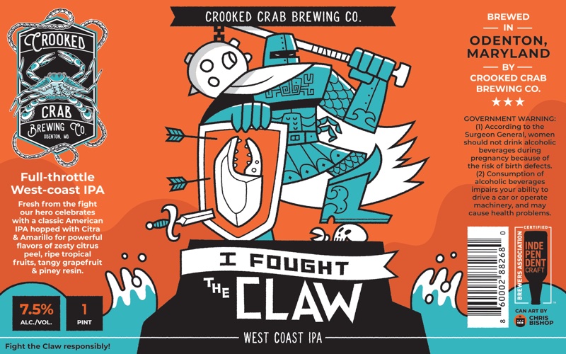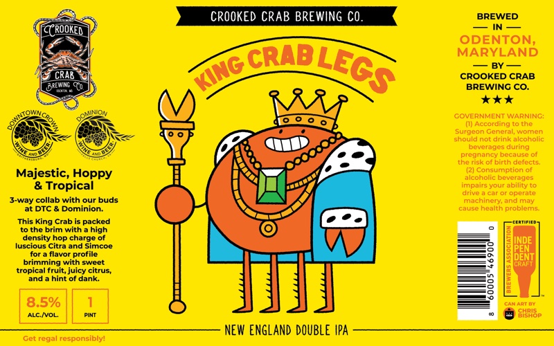 330+ beer can label illustrations for Crooked Crab Brewing Co.